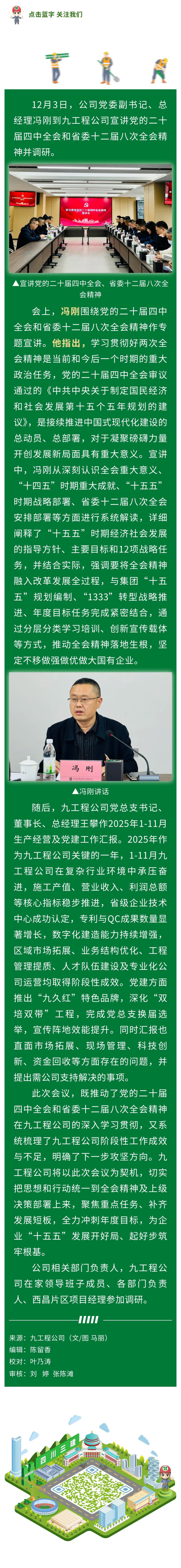 冯刚到九工程公司宣讲党的二十届四中全会和省委十二届八次全会精神并调研