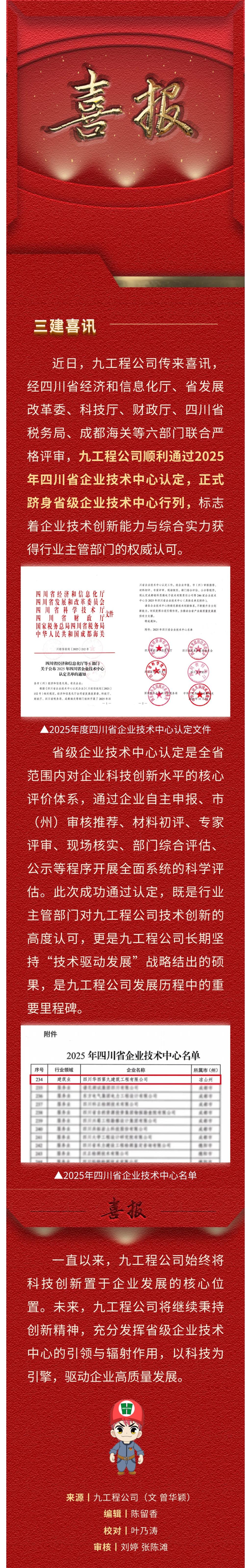 【喜报】九工程公司成功获评四川省企业技术中心认定